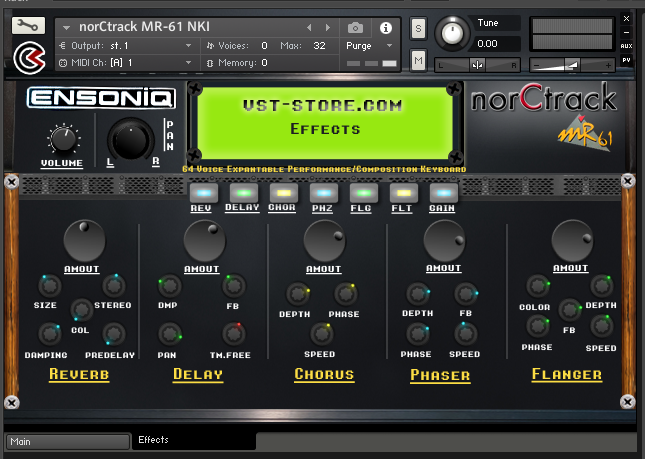 The norCtrack MR61 is made up of 35688 wav samples and 464 *.NKI files with new and easy to use kontakt graphical user interface, which is has two tabs to fully control all nki sounds.